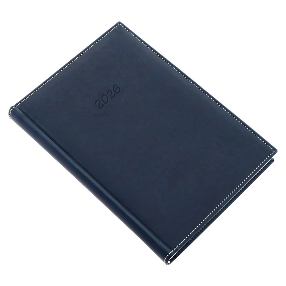 Sárga papíros, cérnafűzött, A/5 napi beosztású, 352 oldalas, sarokperforált, jelzőszalagot és térképet tartalmaz.