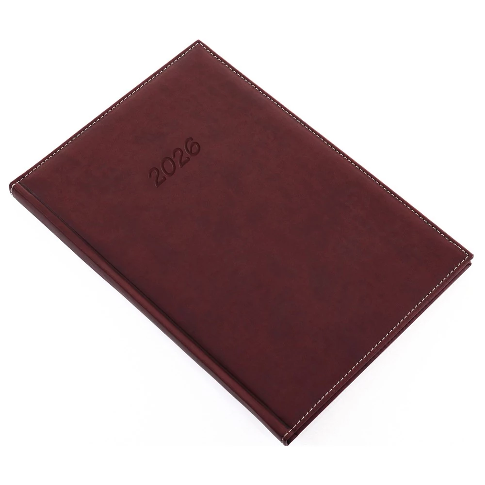 Sárga papíros, cérnafűzött, B/5 heti beosztású, 144 oldalas, sarokperforált, jelzőszalagot és térképet tartalmaz.