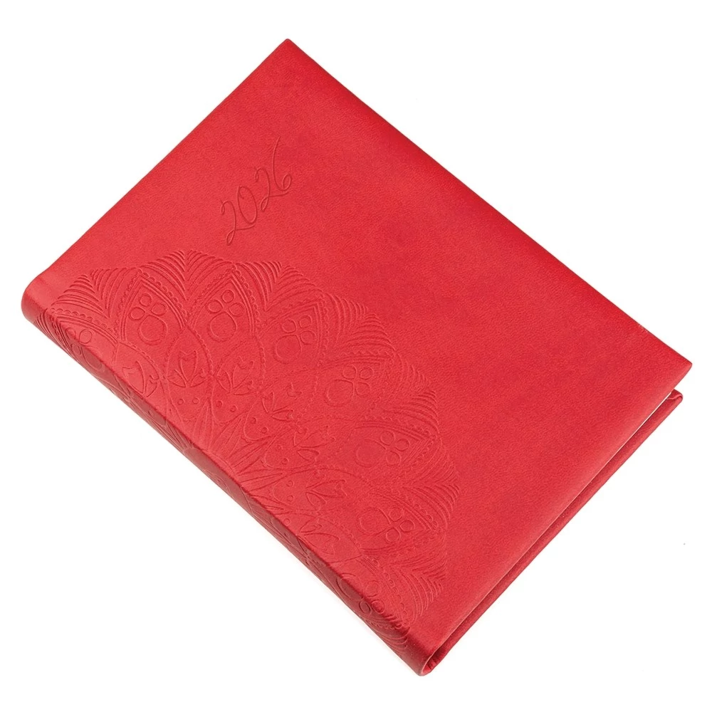 Fehér papíros, cérnafűzött, B/6 napi beosztású, 400 oldalas, sarokperforált, jelzőszalagot tartalmaz.