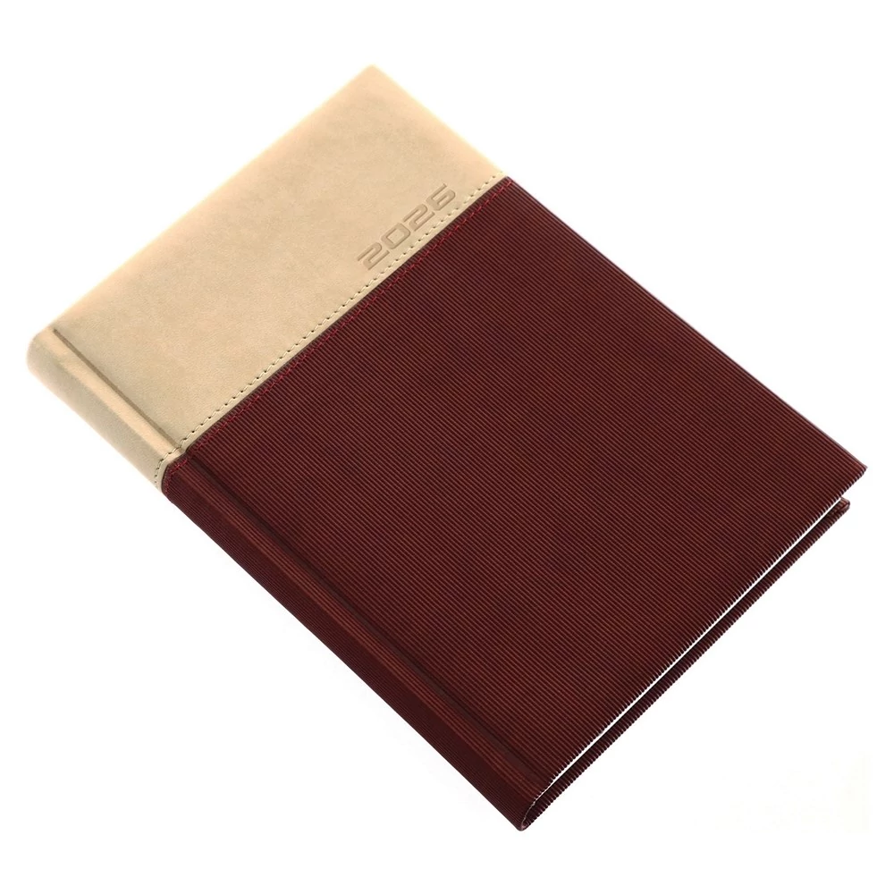 Fehér papíros, cérnafűzött, A/5 napi beosztású, 352 oldalas, sarokperforált, jelzőszalagot és térképet tartalmaz.