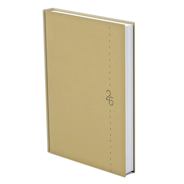 Matt, bőrhatású, hőre színeződő műbőr bevonóval, függőleges dísztűzéssel készült, fehér tömbös naptár, jelzőszalaggal és sarokperforációval (kivéve zsebnaptár). Vaknyomással és lézergravírozással emblémázható.