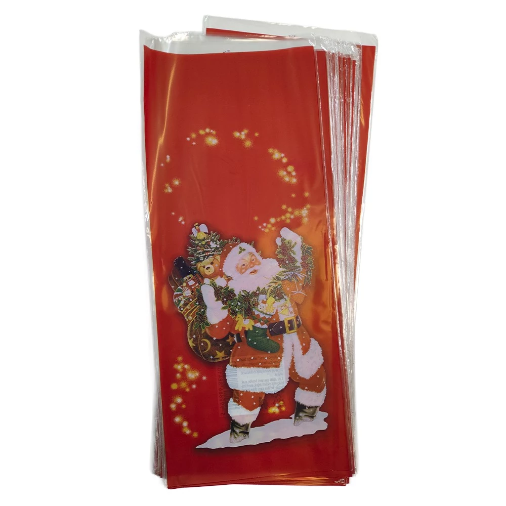 Műanyag, celofán mikulászacskó, puttonyos Mikulás mintával. mérete: 15x35 cm. Csomag tartalma: 100 db/csomag