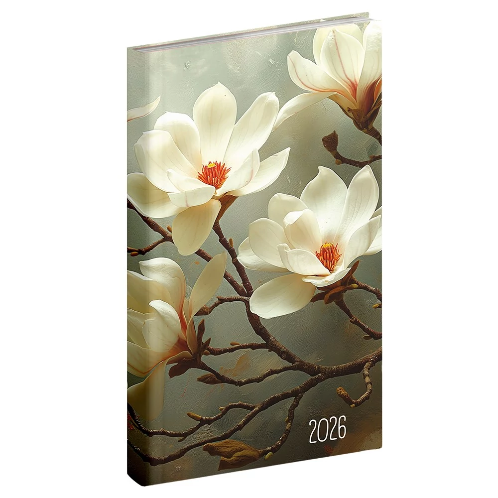 Zsebnaptár REALSYSTEM Picture álló fehér lapos Magnólia 2026.
