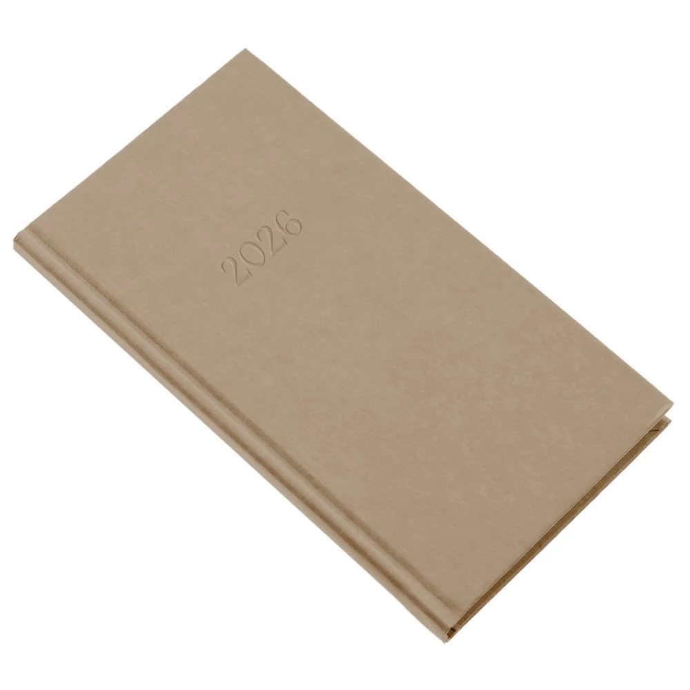 Fehér papíros, cérnafűzött, heti beosztású álló zsebnaptár, 144 oldalas, sarokperforált.